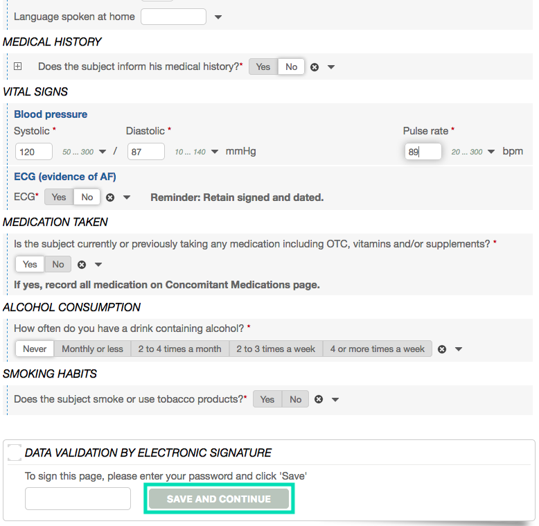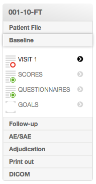 You can navigate through the patient’s file by seeing each of the eCRF sections in the left Menu.