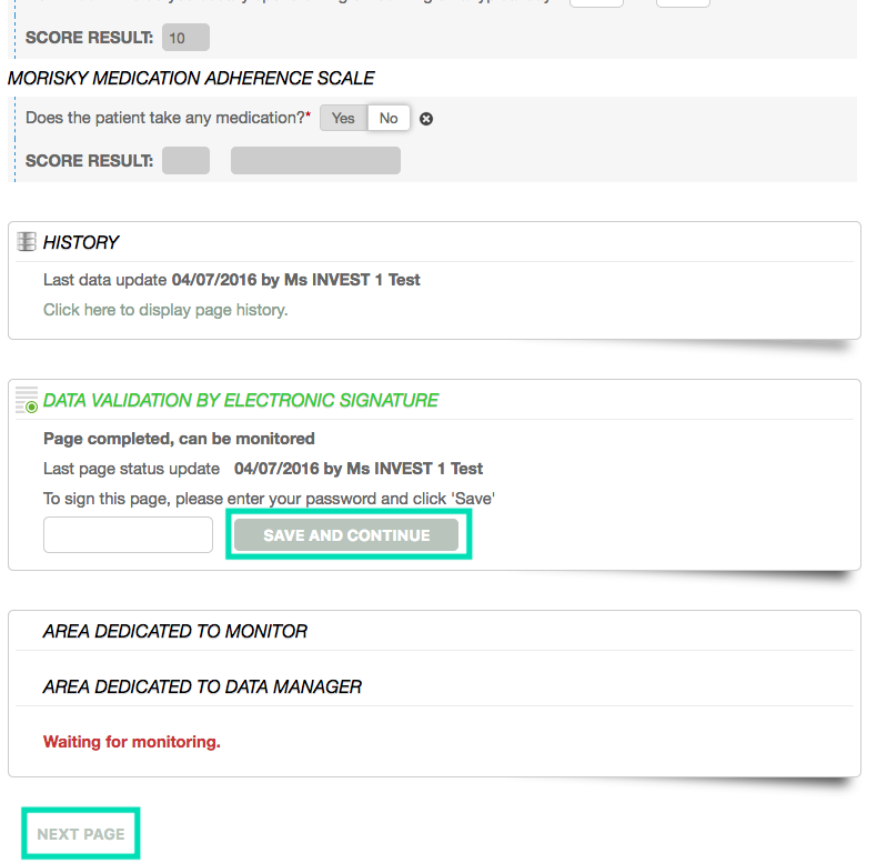 Once the page is signed, you can make changes and save them by clicking on « save and continue ». If you do not make any changes on the page you can click on « Next page » to continue.
