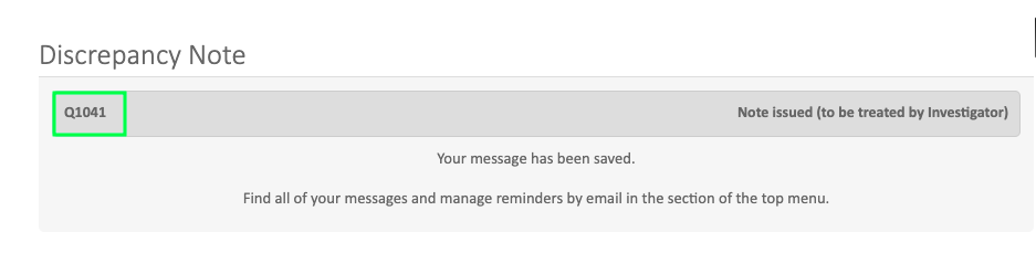 A specific ID will be attributed to the query whose history and status can be managed and follow in the Discrepancy note tool.