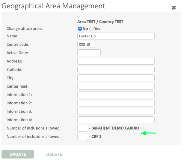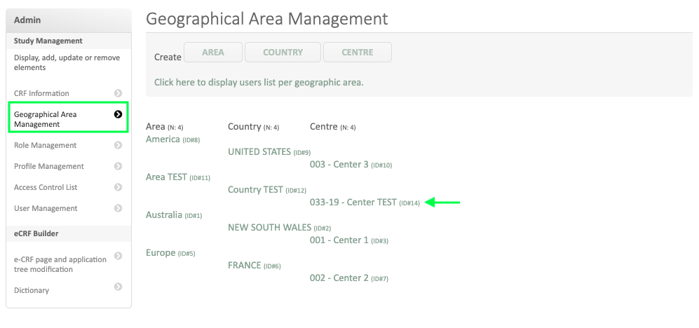 In the « Geographical area management » option, select the specific center where the number of included subject should be limited (see below).