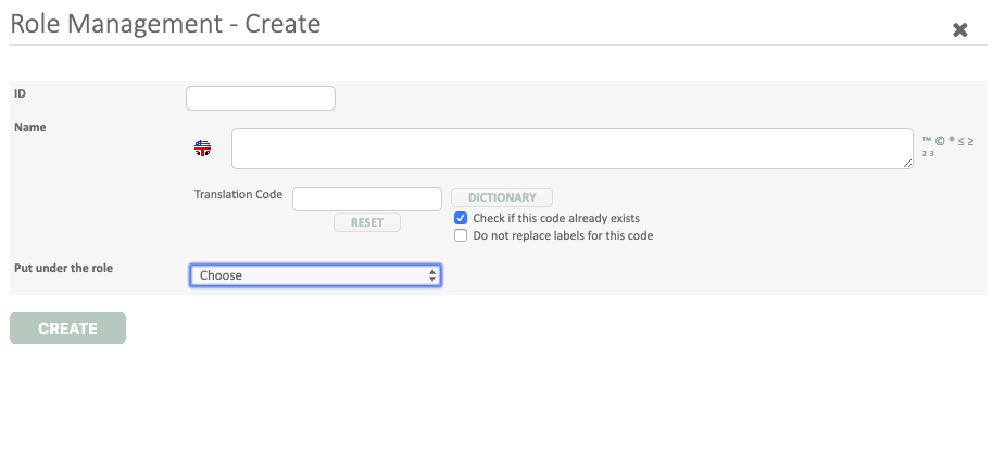 - ID and name of the new role to create (it will be automatically associated to a specific translational code as for all labels in the eCRF tool).