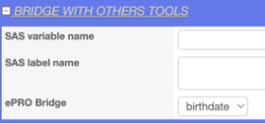 If you click on Patient ID and navigate to the BRIDGE WITH THE OTHER TOOLS section, you can see login is selected in the ePRO Bridge dropdown. Similarly, if you click on the Date Of Birth and Language, the birthdate and language have been selected in the ePRO bridge dropdown.