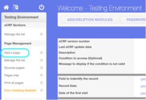 Step 1: Click on CRF Building from the Menu, it will redirect to the Builders Welcome Page, Click on Add a Page from the left side of Page Management
