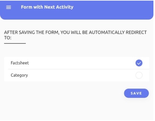 This means a condition has been created for a factsheet field which is on Form with next activity page when a patient clicks on the factsheet field it will open the factsheet page and when the previous button of the factsheet is clicked it will navigate back to the Form with next activity page.