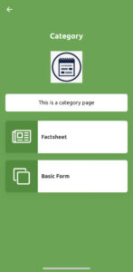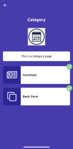 If you want to display information in a categorised manner, you can use this template. From the below screenshot, you can see there are two categories Factsheet and Basic Form. When you click on Factsheet, it will redirect to the factsheet page, and if you click on Basic Form, it will redirect to the basic forms page. When you complete these categories, it will show the green done icon.