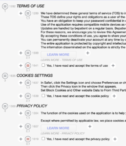 You can create a form using the ePRO only -TOS template (TOS – Terms of Service) when you want to implement a Terms of service or a privacy statement (you can also add a section for Cookies, Privacy, etc.) This template only allows content and checkbox fields.