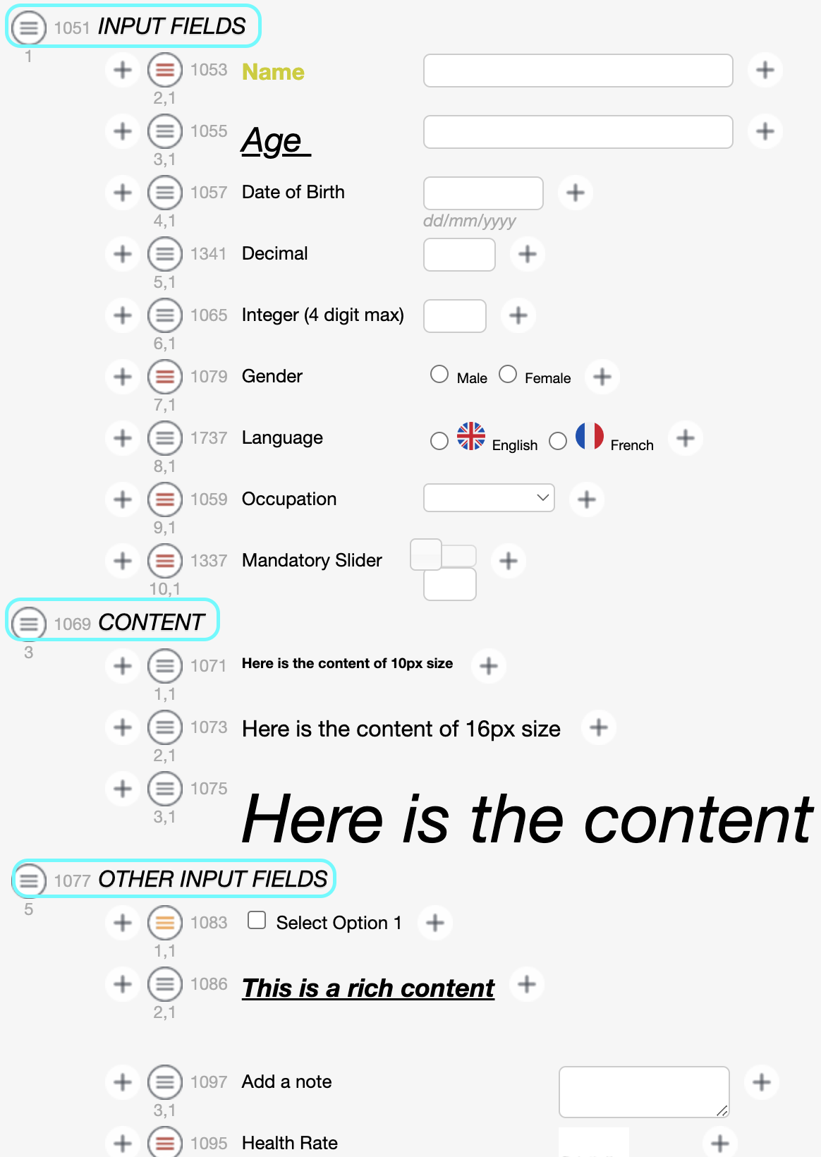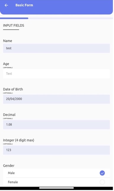 To add a field, you need to add chapter first, and then you can add a field. A page can have many chapters, meaning if you want to add sections on a page that can be done while adding a chapter. For example, in a basic form, if you want to add more than one section, you can add chapters. The progress bar in the application shows when it moves from one chapter to another.