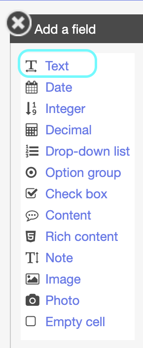 Step 4: Select Text field from the menu, it will open the Add a field page