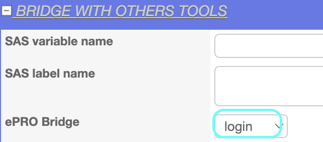 Step 6: Under BRIDGE WITH OTHERS TOOLS section, select “login” from ePRO Bridge dropdown and Click on CREATE button (ePRO bridge can be set for login, birthdate, gender, and language fields as these fields are the main four fields to create an patient)