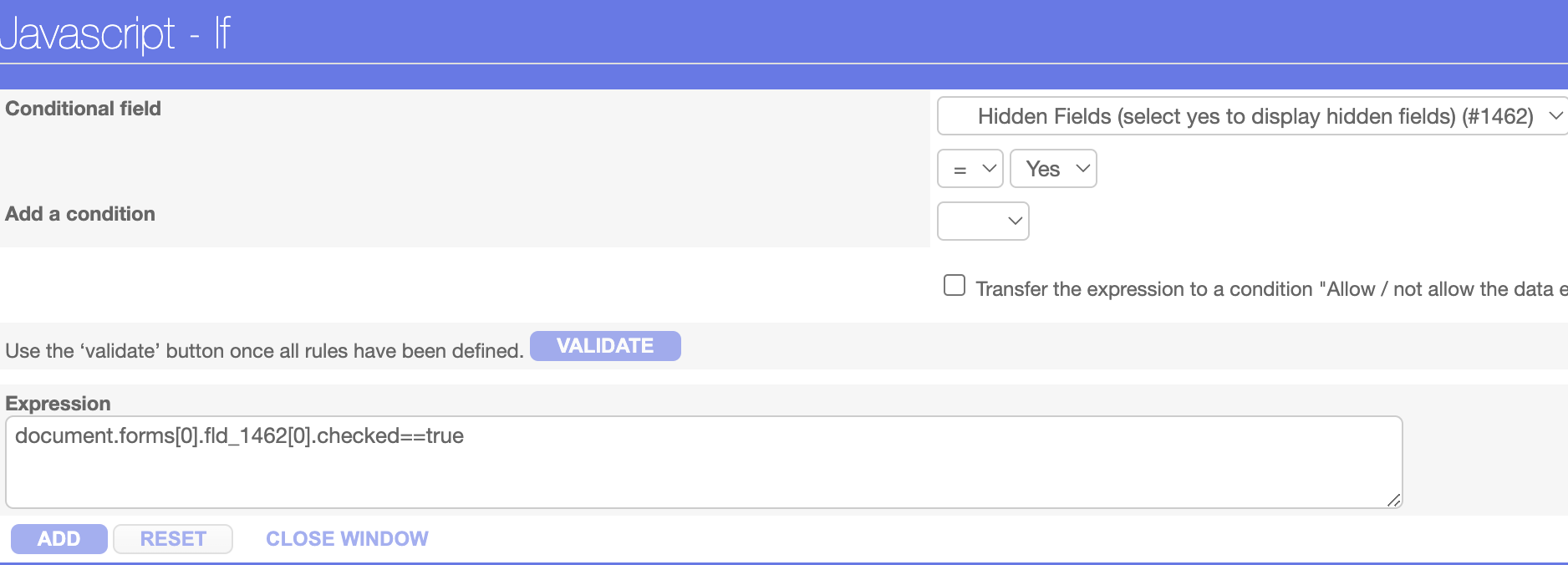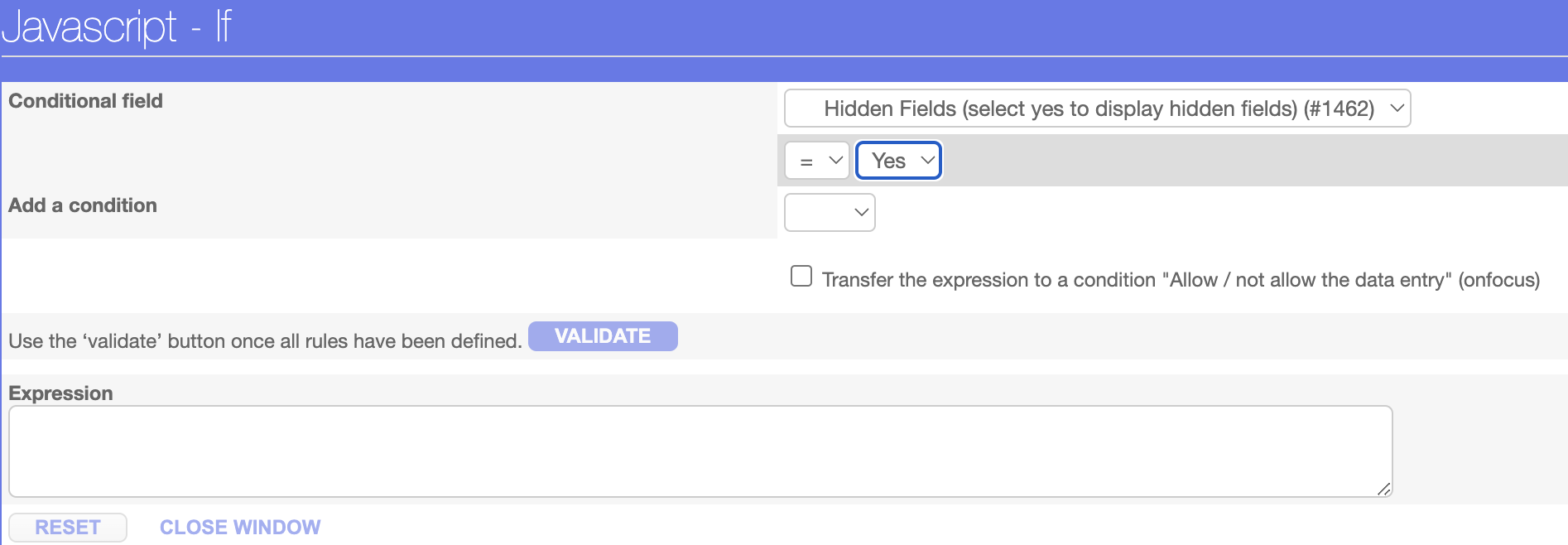 Step 2: Select the main field for which you want to keep this current field hidden, select the operation (equal, not equal), select the field value.