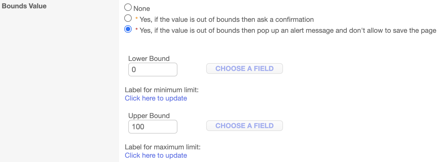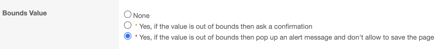 Step 1: Select ‘Yes, if the value is out of bounds, then pop up an alert message and don’t allow to save the page’