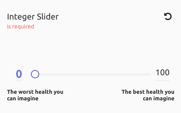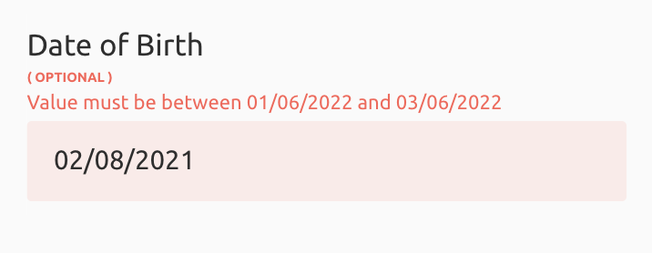 We can set the boundaries of Date, Integer, EQ5D Slider, Slider, and Decimal field by setting up lower bound and upper bound.