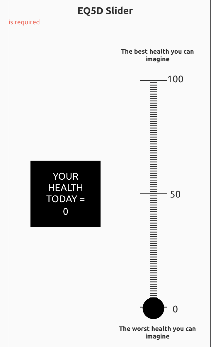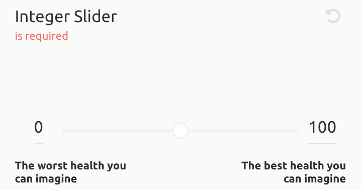 In integer, you can set the text field size, and based on that it will allow you to enter the integers. Also, you can choose the templates like « slider » which is a horizontal slider, and « EQ5D5L slider » which is a vertical slider, besides that you can set the layout and field value.
