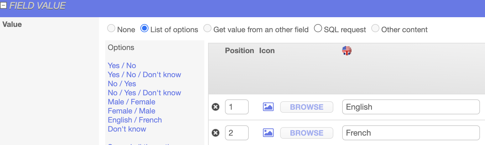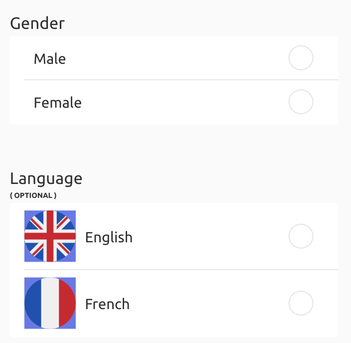 An option group is a radio button to display the option, In the field value, you can enter the option one after another. Also, you can add images to an option group value.