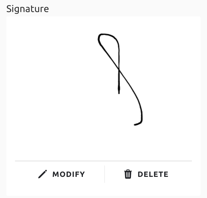 The signature field is used to take the signature of a patient on an eConsent form. This field allows patient to modify or delete the signature.