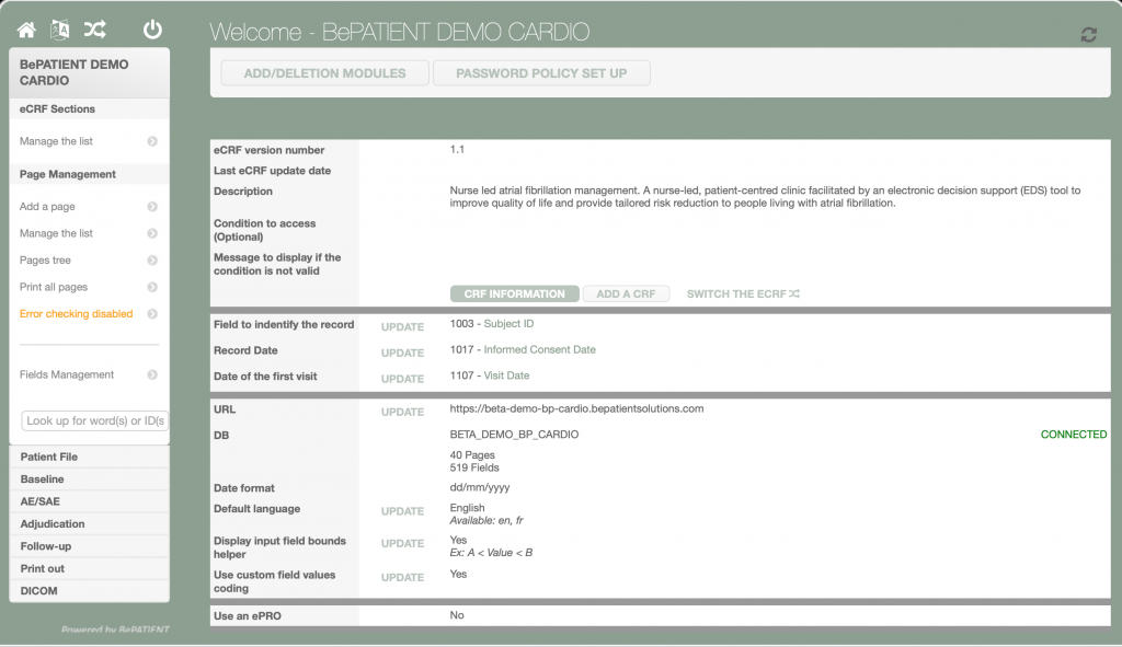 If you have a builder profile, you can access the back-office of the platform by clicking on the following icon in the eCRF menu: