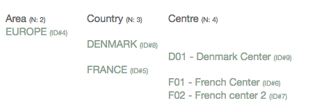 A center belongs to a country which itself belongs to a Geographic Area (Example below)