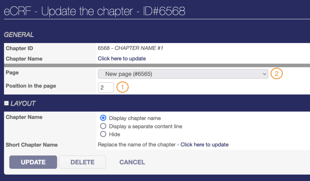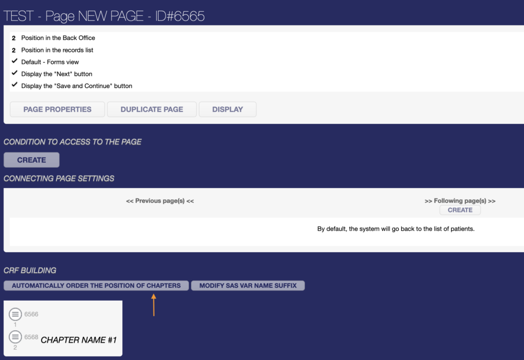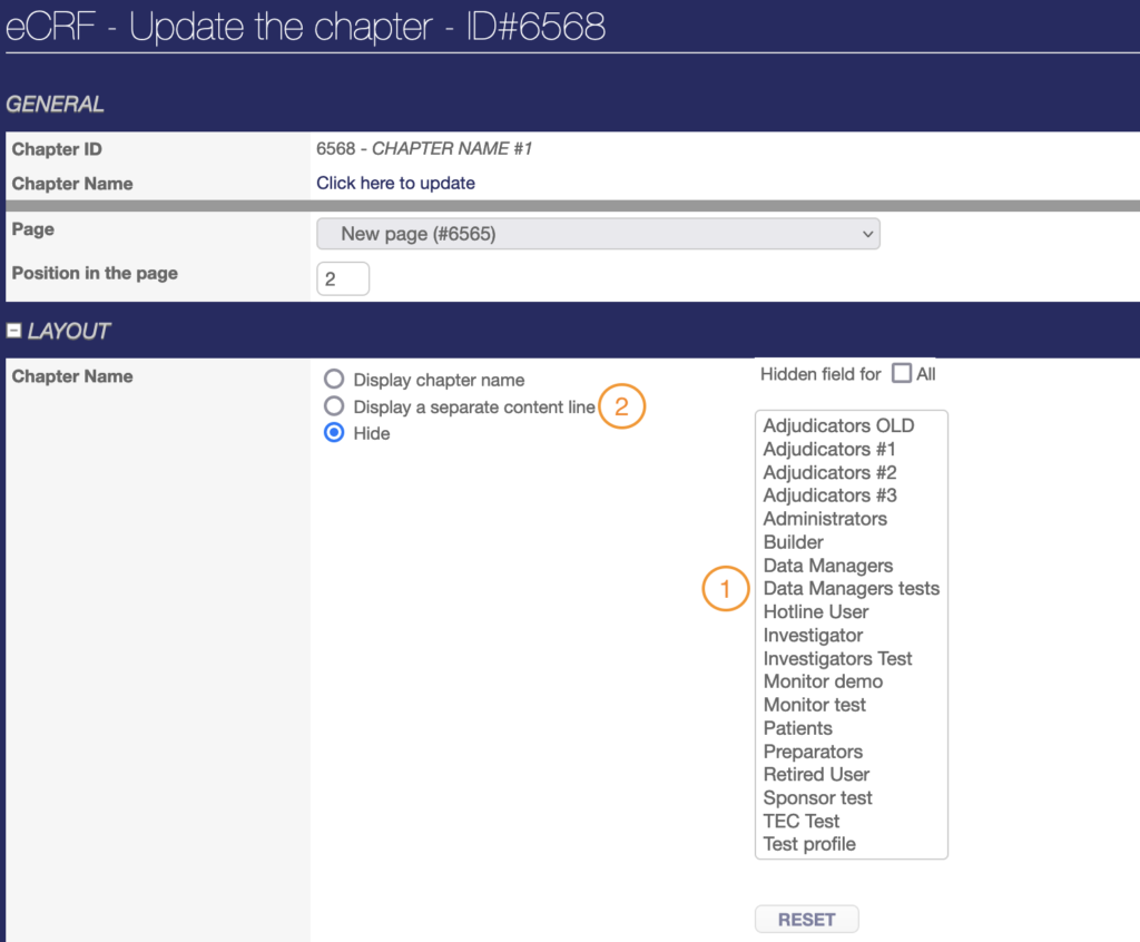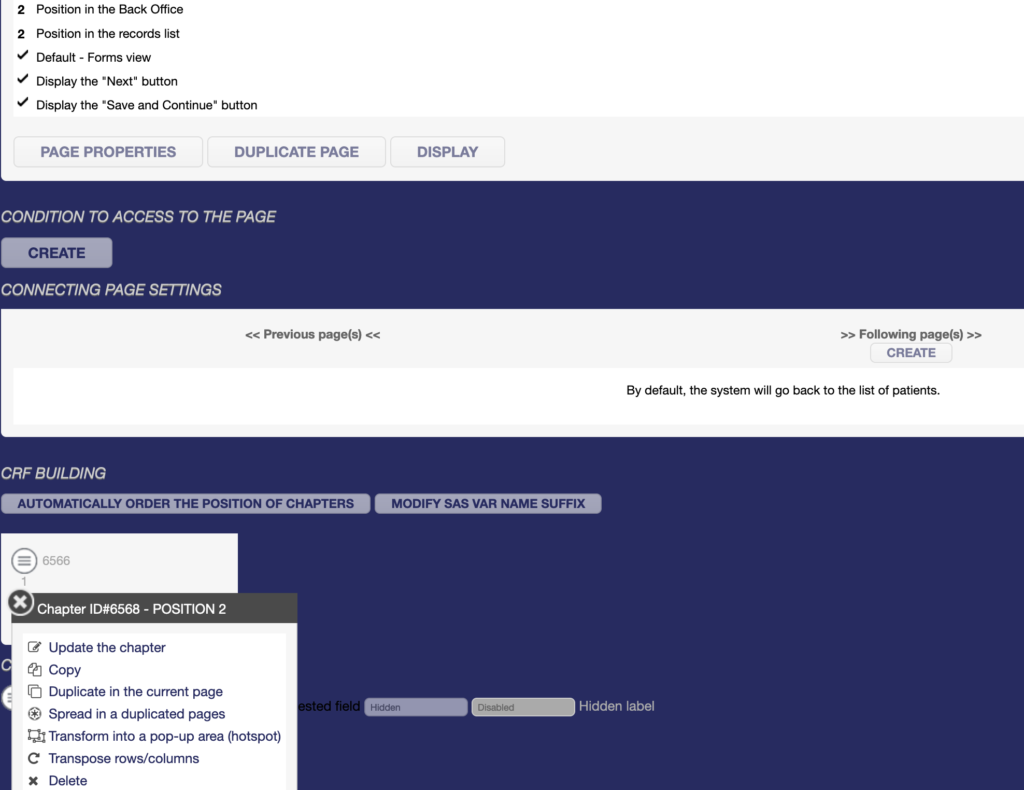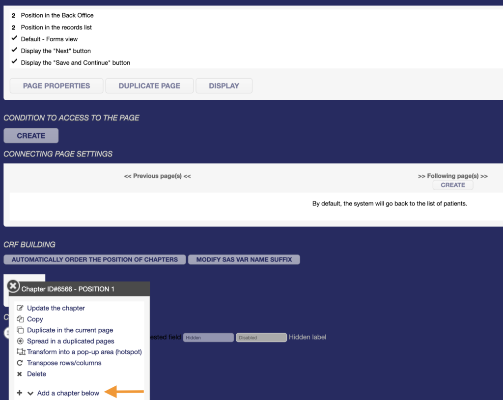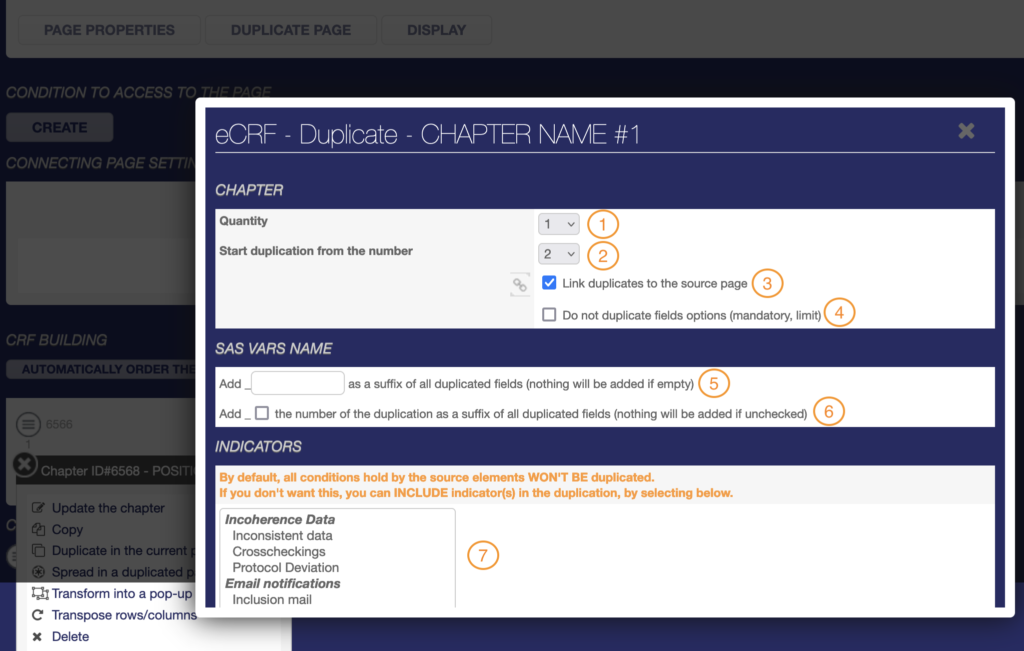 - Copy to copy and paste the chapter to any page of the eCRF,