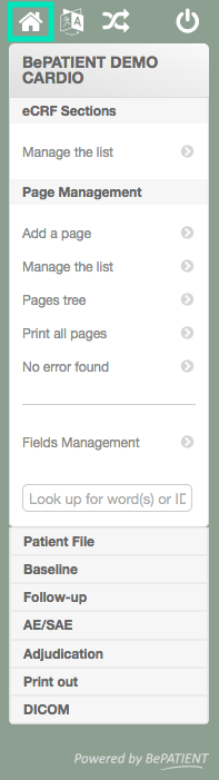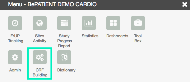 To access the builder welcome page, you can click on the icon ‘CRF Building’ in the tool bar, it opens the builder directly on the welcome page :