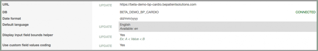 You can define if you want users to see boundary helper in the eCRF when they fill in fields with boundary. Click on update and choose yes or no depending if you want the boundary to be displayed and submit.