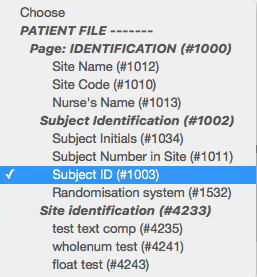 You can see below an exemple of the proposal list of CRF field you can assign to a subject ID
