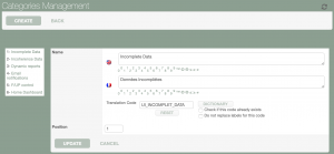 The management of the indicator categories i.e. the creation of new category or the modification of existing category can be done clicking on « Categories management » (see below).