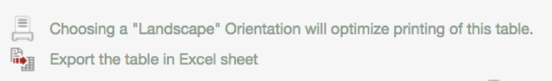 You can export in Excel sheet and print this table by clicking on the « v » icon on the top of the page. The export file will change on how you display the table with the filters (for example the « display investigator name » filter).